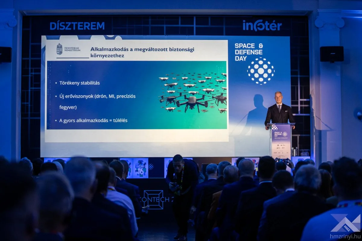 Előadása végén a tárcavezető kitért az űriparra, amelynek jelentőségét azzal is érzékeltette, hogy műholdakról származó információ becsatornázása napi feladat már akár az orosz-ukrán háborúban is.