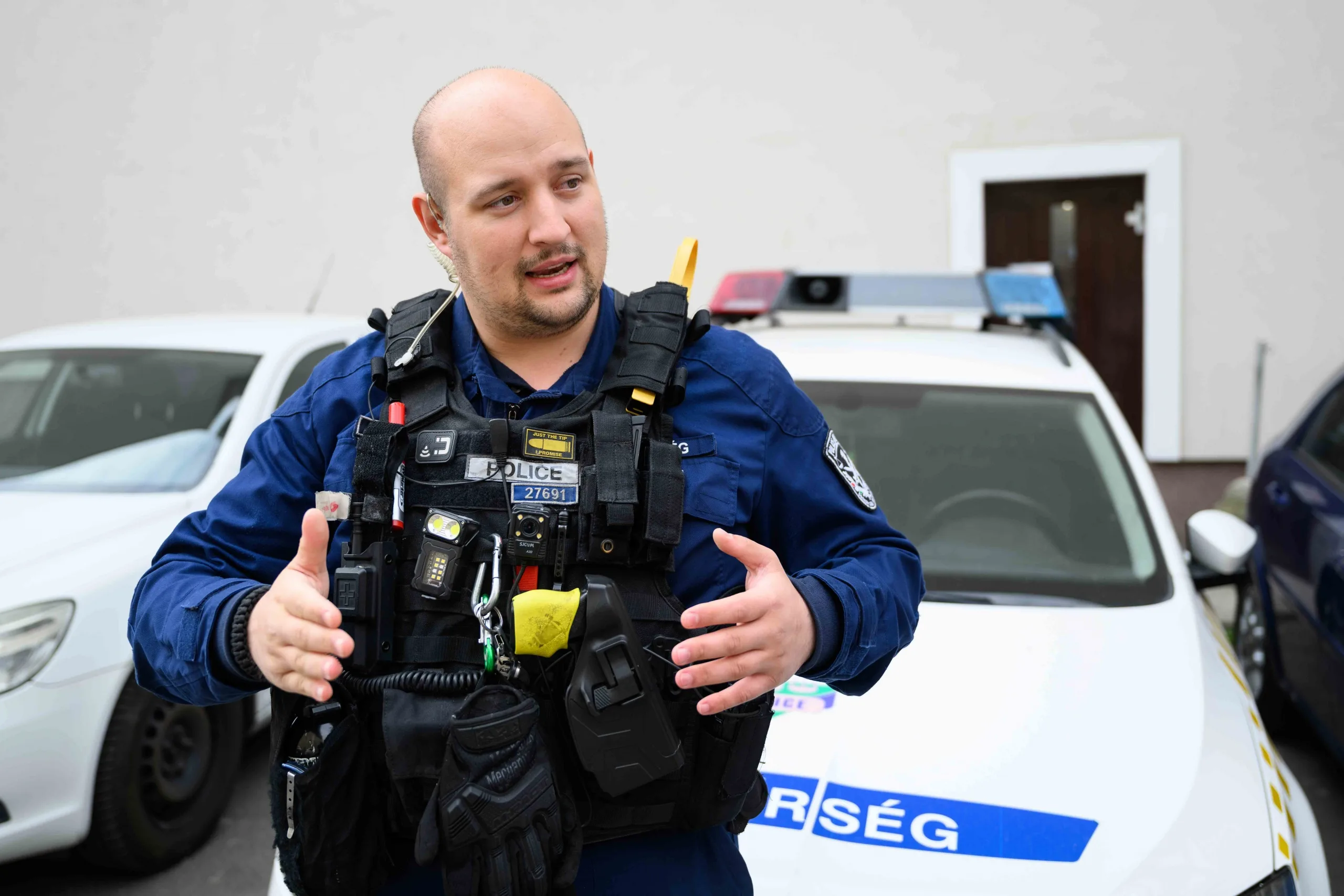 – Engem nem érintett érzékenyen, hogy többször is rám húzta a kormányt, amikor mellé kerültem, nem ez volt az első ilyen gépjárműves követésem, de a tanulókat igen. Igyekeztem őket szóval tartani, és közben koordináltam is az intézkedést, mert a Készenléti Rendőrségről és az érintett kerületekből is csatlakoztak gépkocsizó kollegák. Ahol ráhibáztak, ott próbálták elállni az útját, de nem lehetett belőni, merre tart, annyit kanyargott. A X.-ből visszatekergett a VIII. kerületbe, ahol már célzottan kereste a keskeny utcákat. A Dunakeszi úton aztán elé tudtam kerülni, Kovács Ádám őrmester pedig mögé-mellé, és ebből a háromszögből a mély árok miatt nem tudott elhajtani. Nem volt együttműködő, de gyalog már nem akart menekülni. Mivel menet közben többször is integetett nekem, rákérdeztem, mit akart jelezni. Azt mondta: „hogy hagyjon már a p…ába!”