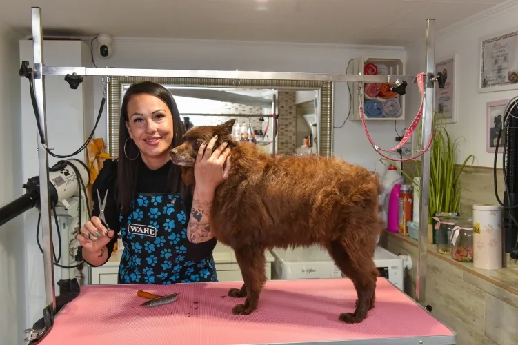 – Már rendőrként szolgáltam, amikor a kutyakozmetikusi OKJ-képzést elvégeztem Miskolcon, és a banktól személyi kölcsönt vettem fel, hogy meg tudjam nyitni a vállalkozásom, természetesen parancsnoki engedéllyel. Ez 13 éve volt, és meglepően hamar kialakult az ügyfélköröm, a kölcsönt fél éven belül visszafizettem – mondta az okleveles kutyakozmetikus, aki azóta továbbképzéseken és külföldi szaktekintélyek bemutatóval egybekötött előadásain is részt vett. – Az egri Megyesi Beatrixot tekintem a mesteremnek, sokoldalúságom neki is köszönhetem. Géppel is szívesen dolgozom, mert minden vágási és festési stílus érdekel, de ollós maradtam. Arra pedig különösen büszke vagyok, hogy sokan tartanak suttógonak. Ebben lehet valami, mert nálam és velem minden kutya megszelídül. Az is, aki már morgott kozmetikusra, de olyat is vágtam, aki bele is mart egy kollegába. Nyalják a kezemet, bújnak az ölembe, és már azon is látom, meg persze érzem is, hogy élvezik a dolgot, amikor megállnak egy helyben, és nem ficeregnek.