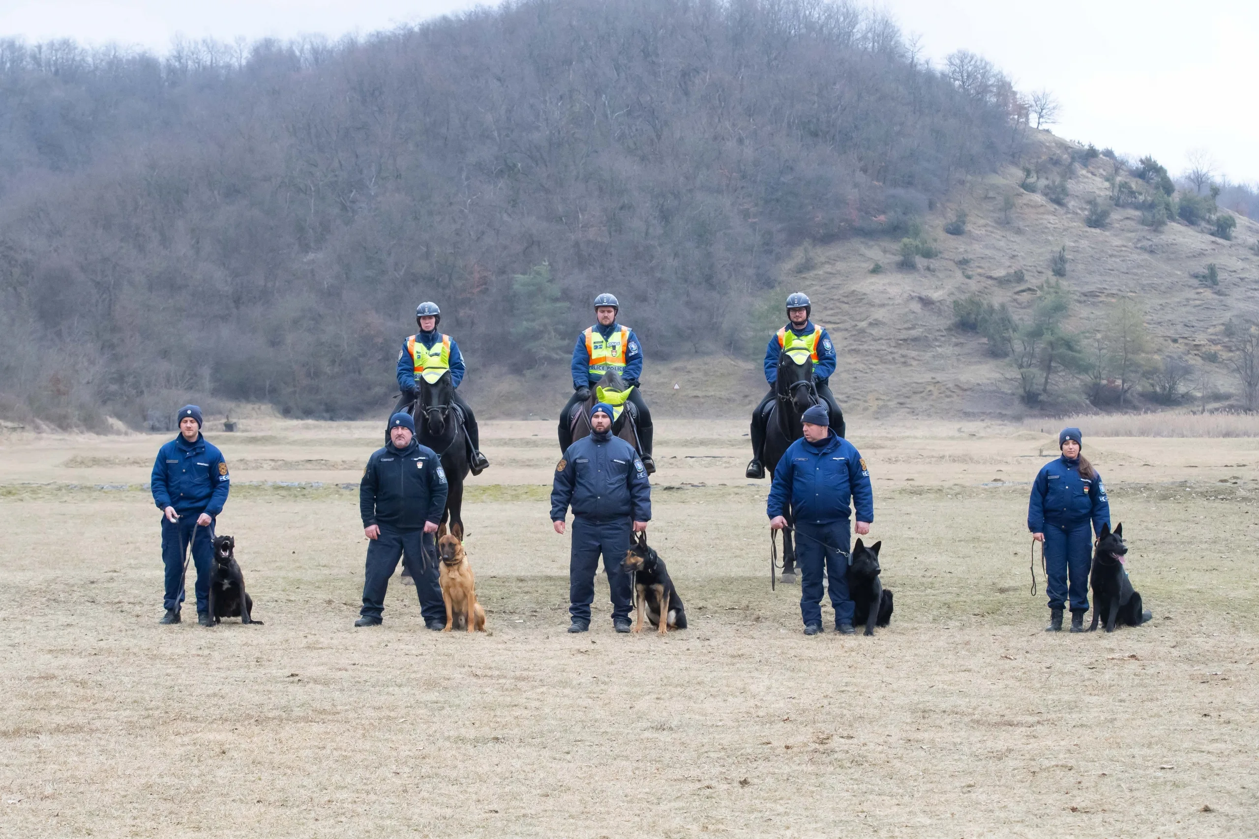 Mindeközben a nógrádi kutyás rendőrök a járőrmunkát gyakoroltatták négylábú kollegáikkal, valamint azt, hogy félelem nélkül tűrjék a lovak jelenlétét, hiszen megesik, hogy olykor együtt kell dolgozniuk, akár nehéz, szokatlan körülmények között is. Például külterületi szolgálatok esetén erdőben, mezőkön vagy feszültebb hangulatú sportesemények biztosításán.