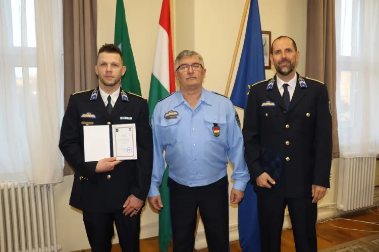 Dr. Szijártó István r. dandártábornok, a Baranya Vármegyei Rendőr-főkapitányság vezetője kiemelkedő szakmai munkájuk és a 2026. január 20-án végrehajtott életmentő beavatkozásuk elismeréseként dicséretben és pénzjutalomban részesítette