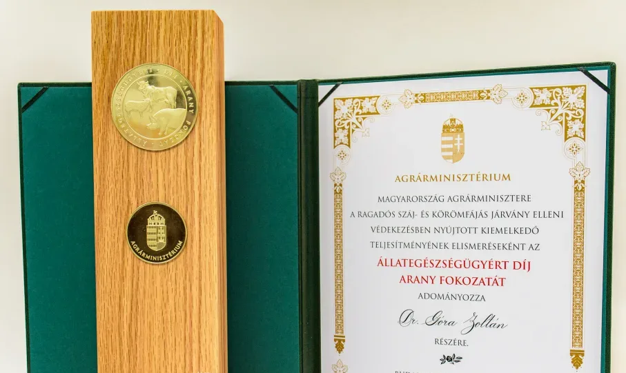 Dr. Nagy István agrárminiszter az Állategészségügyért-díj arany fokozatát adományozta október 21-én a ragadós száj- és körömfájásjárvány elleni védekezésben nyújtott kiemelkedő szakmai teljesítmény elismeréseként.