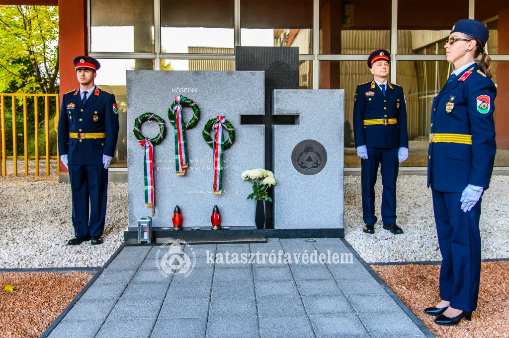 A hagyományokat követve a katasztrófavédelem munkatársai idén is koszorúzással és főhajtással adóztak a hősi halottak emléke előtt.